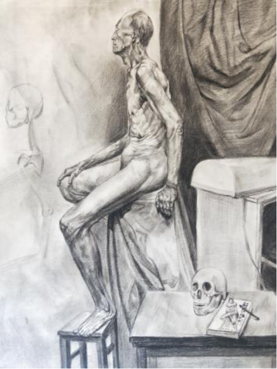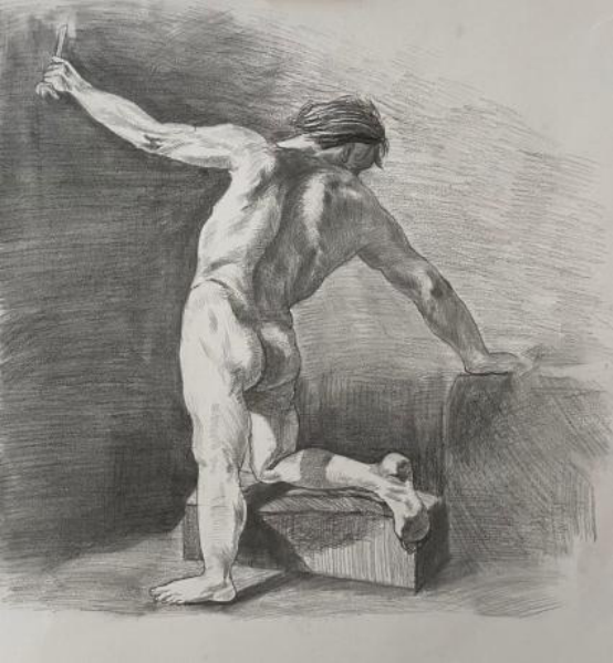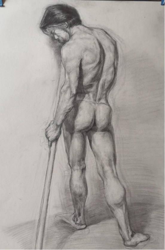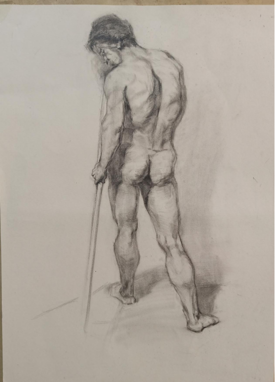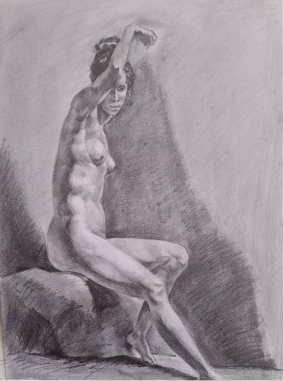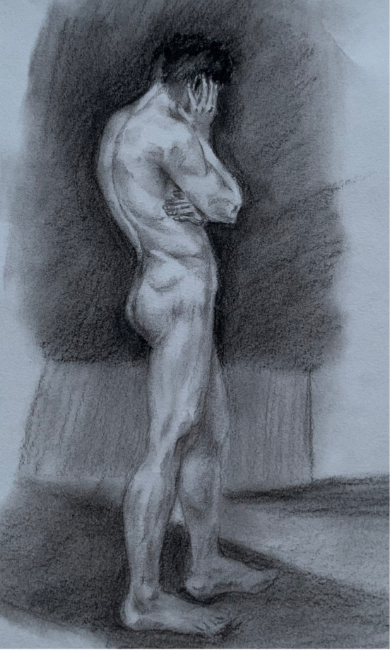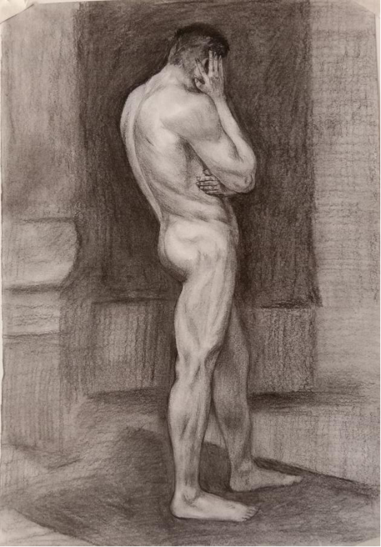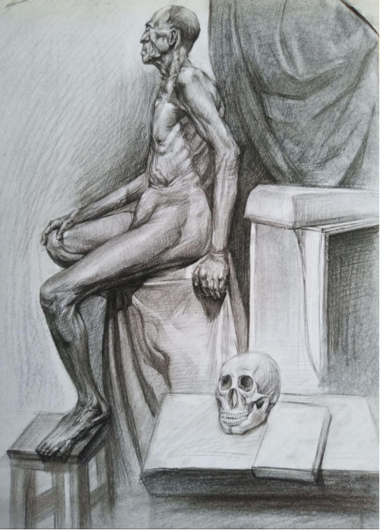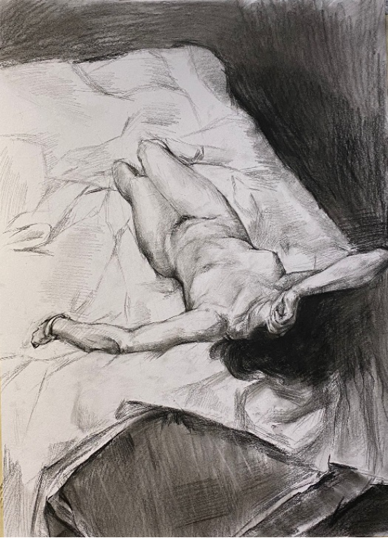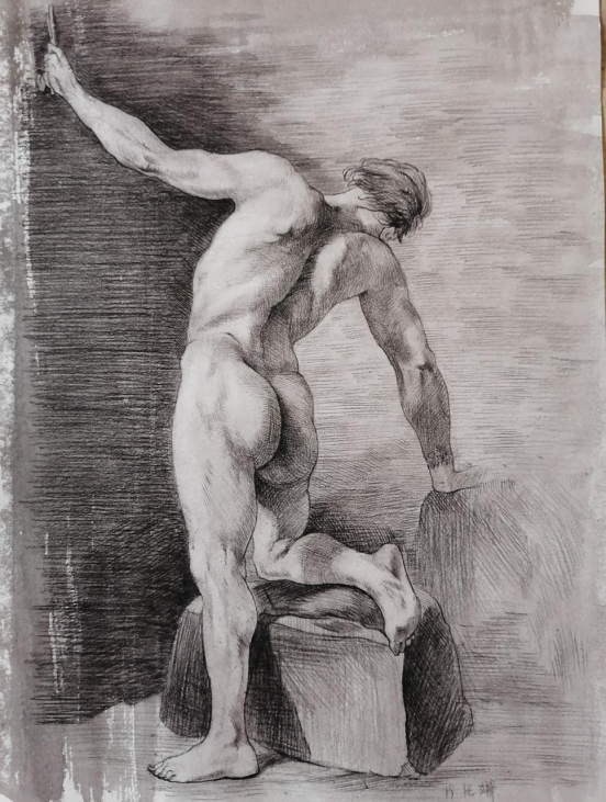 一段时间的人体素描课程结束了,通过一段时间的学习我们临摹过大师的作品,也有过认真仔细的创作。老师每次的课前讲解很详细,虽然是网上教课,但是讲的很透彻,能给我们很大的启发。我们对人体的结构有了更深层次的了解,对作品的色调的协调更加重视,收获很多。