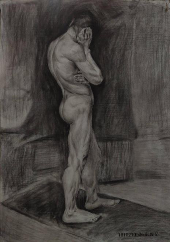 在经历了几周的人体素描课后,虽然时间不长但是我们都有很大的进步。感谢张方明老师对我们的悉心教导,让我们对人体的肌肉结构有了更好的理解。在今后的学习中我也会更加努力的练习让自己绘画水平进一步提高。