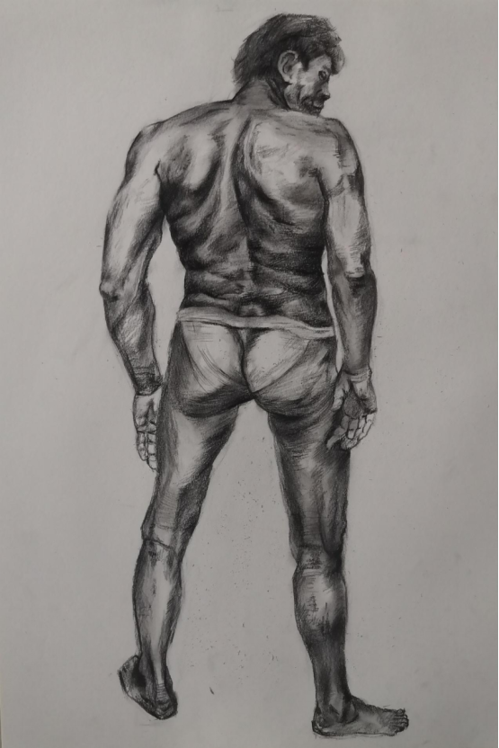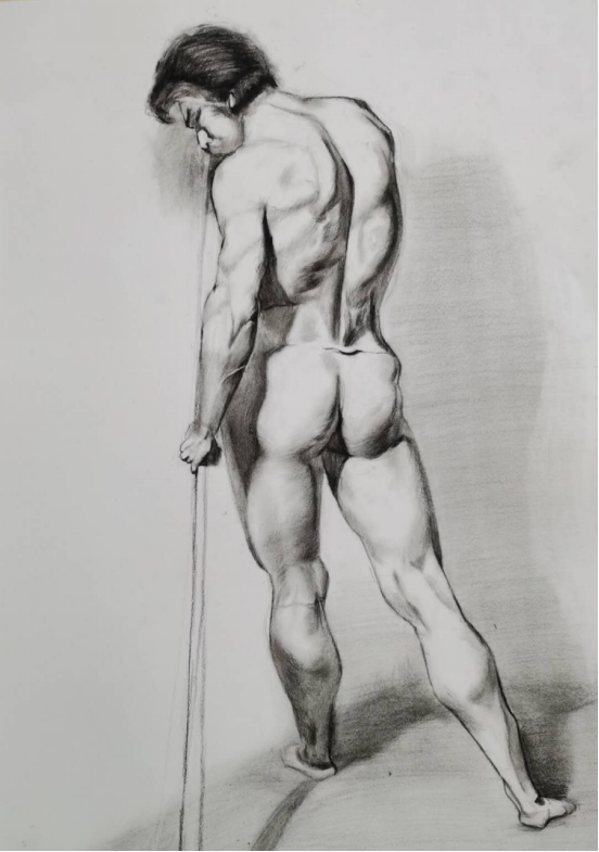 由于疫情的原因,人体素描的课程在网上进行。通过这段时间的学习,我的收获非常大。通过学习人体结构,人体的动态,肌肉和骨点的凹凸都可以表现的很生动,也对我画出的作品起到了非常大的作用,非常感激这段课程老师对我们细心的教导!