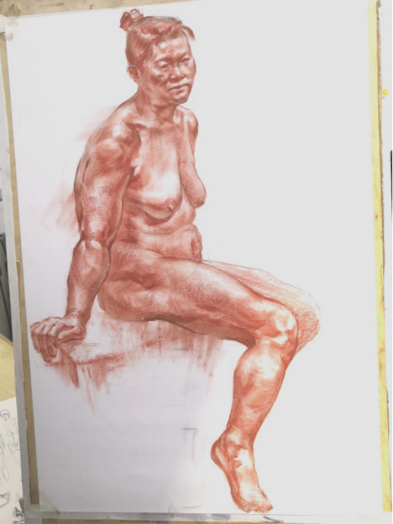 首先感谢亲爱的张老师在这四周里对我们的悉心指导。在这短暂的一个月里,我更进一步的了解了很多有趣的人体结构,各个肌肉骨骼的精确位置、男女身体比例结构的不同等等都让我感受到了“人体的奇妙”。用黑白单色调和墨、国画颜料制成底色相融合的不一样视觉感受又一次刷新了我的新认识,这次的课程只是我的一个初体验,会继续学习下去的。