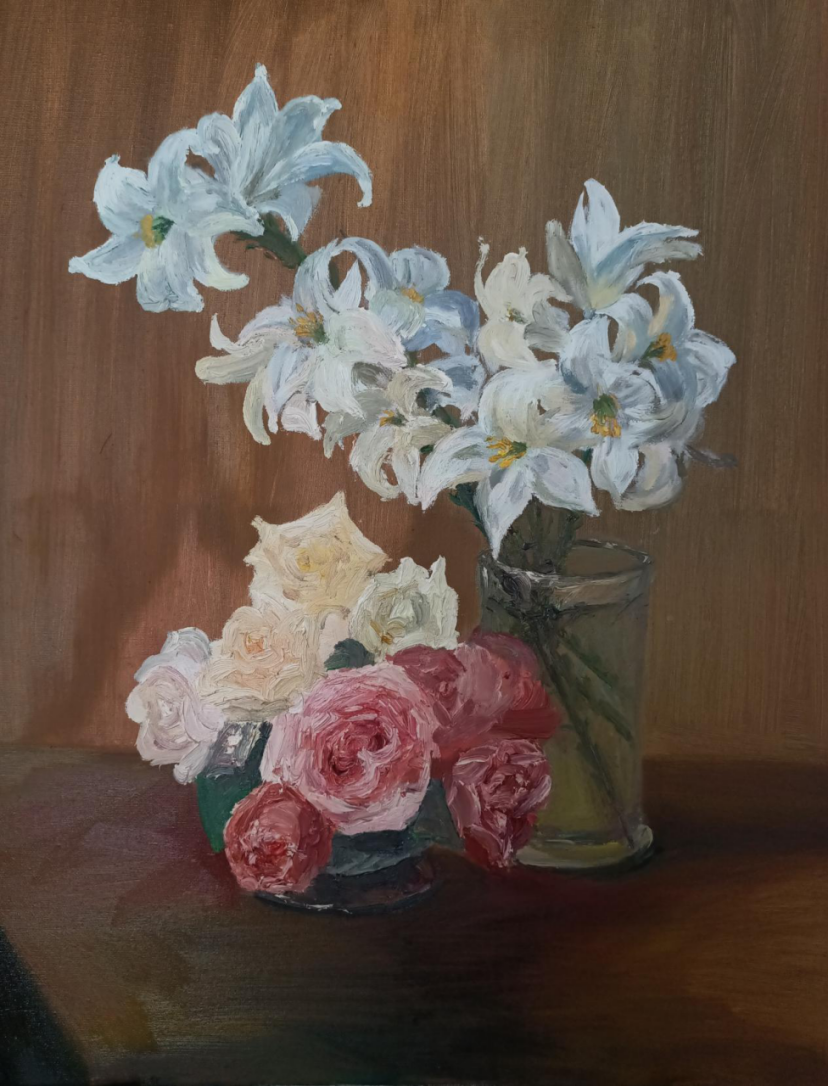 第一次接触油画就对油画产生了浓厚的兴趣,因为疫情期的影响让我有了更多的时间在家画画,可以有更多的时间研究油画。通过老师不辞辛苦的讲解,我对颜色的关系、理解有了深刻的认识,对绘画的技巧、方法有了进一步的了解。