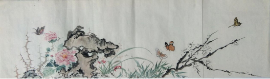 第四周课程:根据学生创作过程中出现的问题进行辅导,课堂辅导也是提高花鸟画教学质量的重要环节。教师要充分发挥教学中的“直观”作用,根据每个学生因材施教,启发他们独立思考与刻苦钻研的精神,逐步引领他们走向中国画的正脉。在手卷册页创作训练中,逐步培养学生对传统写意花鸟画的笔墨提炼与认识及学生审美意识的培养,掌握手卷册页创作的独特表现以及情感的表达。理论与实践的结合,是艺术创作的根本方法,通过这些教学设计和实施,较好地达到了教学目标,使学生最终绘制成一幅完整的手卷册页创作。