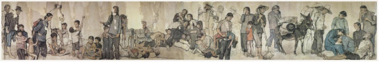 临摹前先对近现代写意人物画的发展进行详细的梳理和讲解。通过画册和图片资料对作品的风格画法进行解读,对现当代写意人物画的技法演进和风格变化有较为深入地了解。选择不同时期不同风格的经典作品深入解读,适当加入类似徐悲鸿的《愚公移山》、蒋兆和的《流民图》、周思聪的《人民和总理》、石鲁的《转战陕北》等主题鲜明,时代气息浓郁,积极向上的现实主义题材作品的分析,从不同角度开发学生的创作思维,启发学生独立思考和创作的能力,达到创作的作品有一定的笔墨境界与心灵对应下的文化承担的同时,也能充分地反映时代气息。使学生领会作品的审美意趣,从创作背景、思想精神、立意布局、写形方式、笔墨和赋彩技法等方面进行深入分析,准确把握中国画“以形写神”、“意象造型”、“以书入画”的精髓。