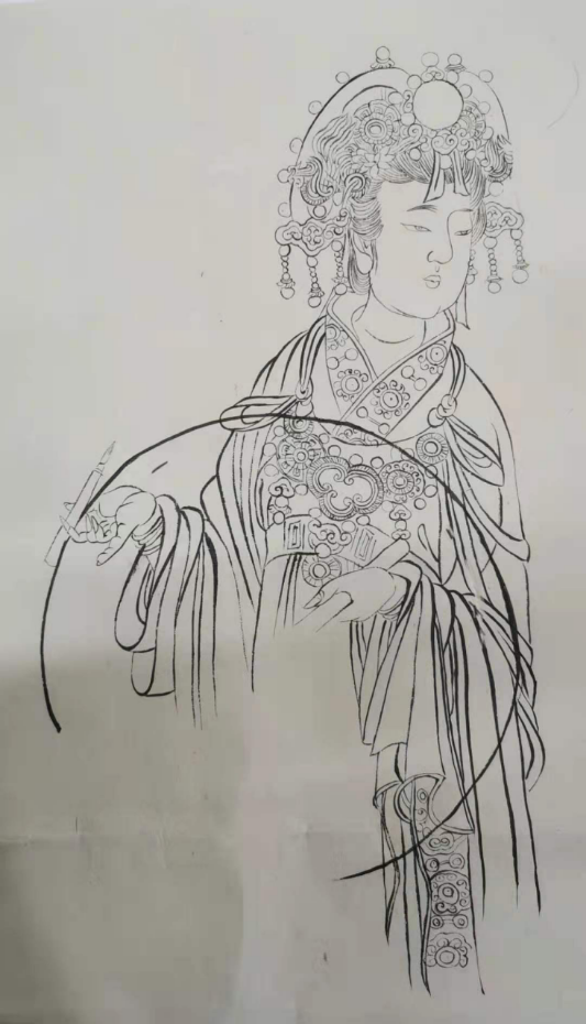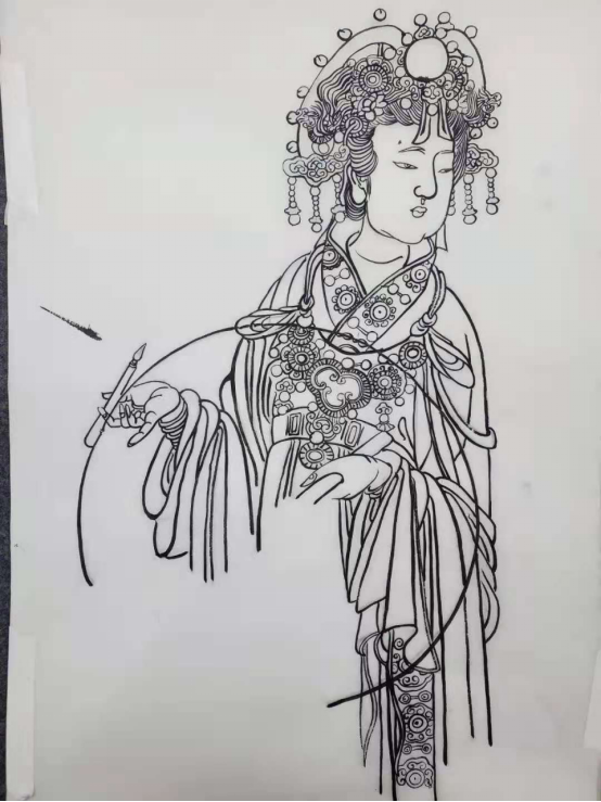 首先,因受疫情的影响本课程采用的是线上教学的模式,理论课程通过雨课堂运用PPT,对白描的历史和发展进行全面的讲述,让学生们了解线描是如何产生的,如何发展的,以及在线描发展的过程如何确立评判线描的标准和特点,对于“十八描”进行详细的理论阐述。