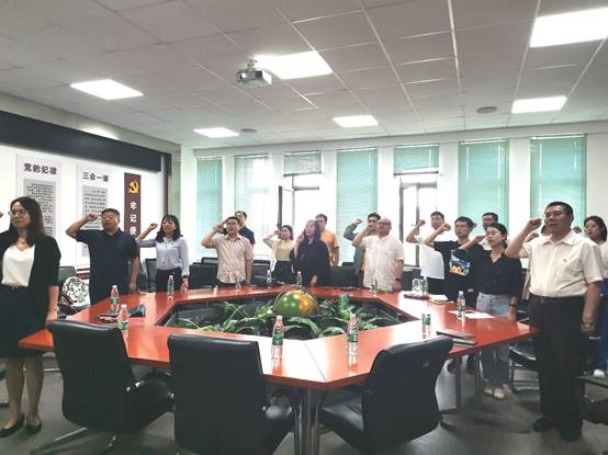 会上,支部成员张晓杰作为领誓人,带领与会人员重温入党誓词。