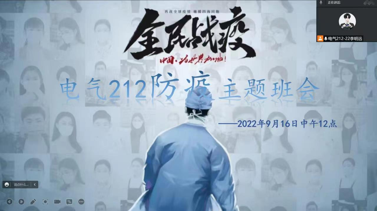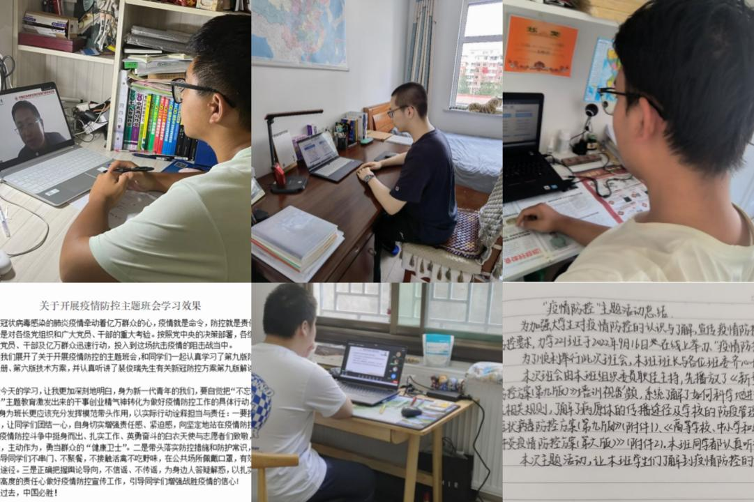 本次班会根据学生工作部《关于开展疫情防控主题班会的通知》,通过主题宣讲、观看视频、集体讨论等方式,组织学生学习《新型冠状病毒肺炎防控方案(第九版)》《高等学校、中小学校和幼托机构新冠肺炎疫情防控方案(第六版)》,通报了大庆市、学校疫情防控工作情况,引导学生科学防疫、养成文明素养、主动担当配合,共筑校园抗疫坚实堡垒。