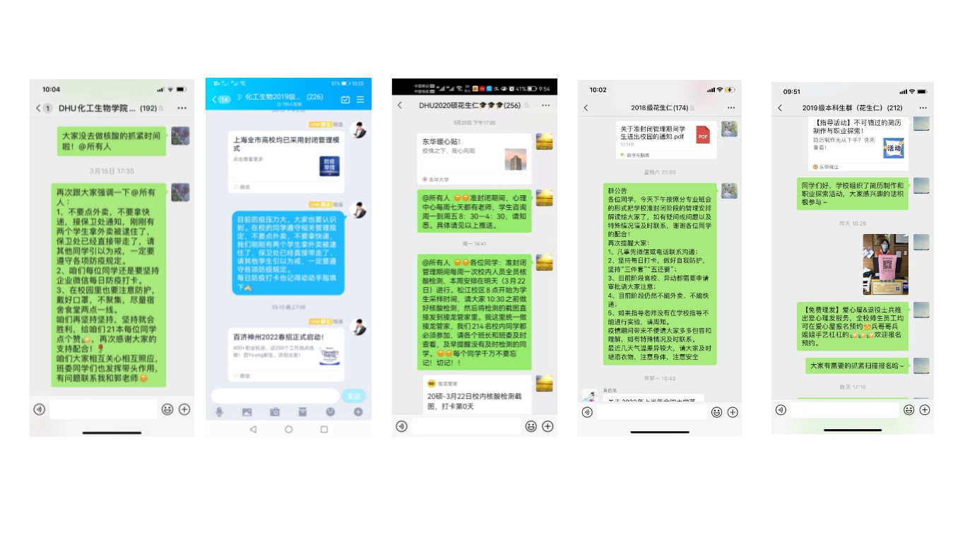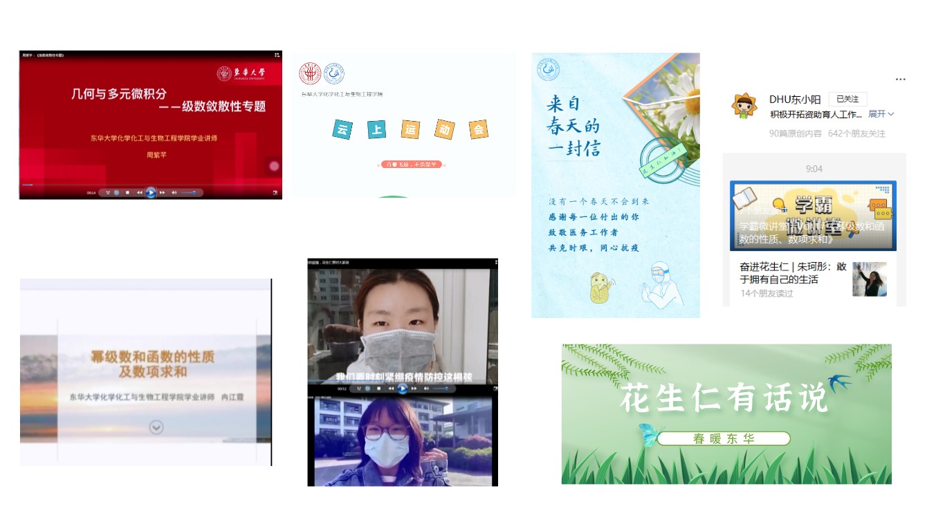 如何确保停课不停教、防疫不妨学,这是学院共同聚焦高度重视的问题。师生线上面对面,互动课堂“云端见”,学院快速启动网络教学,全体老师第一时间全身心投入线上教学,精心打磨教学内容,教学科研有序开展。学院党政班子始终心系在校师生的生活问题,千方百计筹措物资,为在校老师送去床垫棉被、食品、换洗衣物等,提供坚强保障;多位导师克服家人生病、家中无人照料等重重困难,坚守一线,悉心指导学生实验工作和论文撰写,鼓励学生坚定抗疫必胜信心;多名教师自封校以来连续多天核酸检测,学校一转入准封闭状态立即申请进校,立刻以饱满精神状态推进教学与科研工作,提前准备好研究生复试工作。纺织化学与染整工程学科党支部教师党员主动承担值班工作,由“面对面”改为“键对键”对学生有效开展实验安全培训、学业关怀和心理疏导,用“辛苦指数”换来学生成长的“幸福指数”。学业支持发展中心创建“花生仁学业互助”交流群,鼓励带动学生每日打卡学习,分享学习笔记,营造浓厚的线上学习氛围;从入党积极分子中精心挑选的学业小讲师们积极录制学业微课,凝练总结高数学习方法,微课视频被学校学生事务中心公众号转载,辐射全校学生。