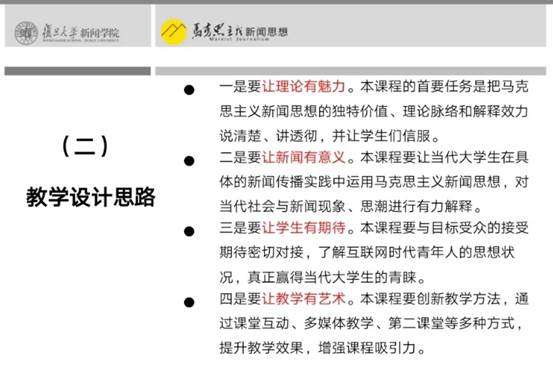 马凌介绍了马克思主义新闻观教学与研究团队在课程思政建设中的积极探索。传承复旦新闻学院“好学力行”的优良传统,课程采取“走出去”战略,实现从书本走向媒介化社会,从学校小课堂走向时代大课堂,从现实走向初心。秉持“让理论有魅力,让新闻有意义,让学生有期待,让教学有艺术”教学设计理念,借助体验式、沉浸式教学法,让学生在社会考察实践中真正吃透马克思主义新闻观,深入了解当代中国,提高理论分析能力,培养社会责任感。