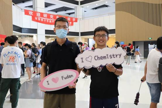 今年江湾校区理工科报到人数继续上升,迎来了计算机、软件学院和代谢与整合生物研究院三个新学院,也在新体育馆迎来了新生们,可谓是“新学年新气象”。在学校提前预案、合理安排下,保证了报到现场的有条不紊。法学院、物理学系和化学系也制作了各式各样的KT板,新生纷纷举起标语牌拍照留影。化学系为本系研究生新生准备了今年“特殊又实用”的入学礼物——口罩夹,是疫情下特别的温暖;新生也可以通过扫描注册在学校校友会领取“校园一景”的书签。