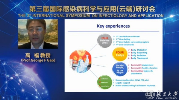 中国疾病控制与预防中心主任、中国自然科学基金委员会副主任、中国科学院院士高福教授作为第二天主旨演讲嘉宾作了题为《新冠肺炎:病毒发现、预防及治疗》精彩报告。高福院士作为新发感染性疾病领域的专家,介绍了中国新冠肺炎的流行病学权威信息、防控措施及取得的成功经验。他将中国抗疫经验归纳为:四层壁垒、4个早(早发现、早报告、早隔离、早治疗)、全名动员为人民(社区参与、全民教育和爱国卫生运动)、三个“协调”(资源分配、后勤保障、公众理解及信息反馈)。高福还着重介绍了他团队研发两款疫苗的进展情况及其它防治手段。最后告诫与会者:作为一个全新的病毒,人们对新冠肺炎病毒的认识还远不够深入,还无特效药物。已证明现行的防控措施是最有效手段。疫苗的长期预防效果及安全性也有待临床数据考证。