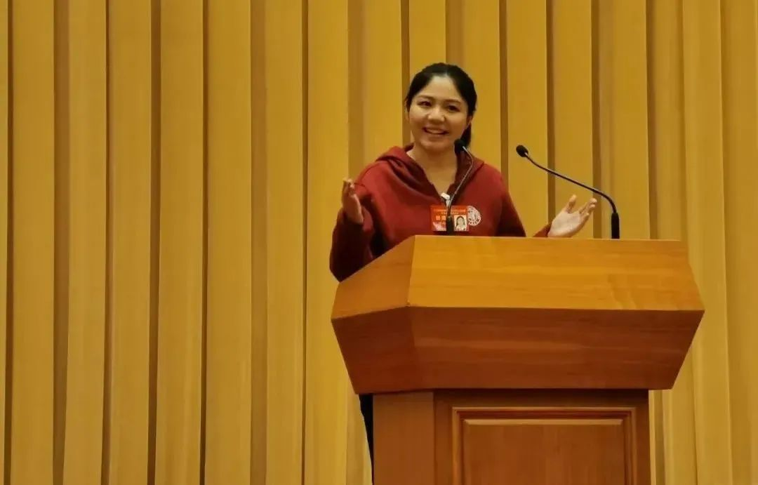 “星火”党员志愿服务队队员、马克思主义学院2016级博士生陆婷婷代表服务队上台领奖,并作为全国8名基层宣讲员之一,现场进行交流发言。她介绍了“星火”党员志愿服务队开展理论宣讲的情况,汇报了志愿服务队在加强理论学习、做到真懂真信,注重量体裁衣、做到讲活讲透,建立长效机制、做到走稳走远等方面的工作成效和体会。