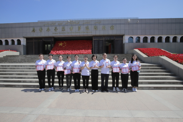 为庆祝中国共产党成立100周年,6月20日,师范学院全体教师和学生党员代表,赴乌鲁木齐开展“党旗映天山,奋进新时代”“七个一”主题党日活动暨参观一次展览,给烈士献一枝花,唱一首红歌,重温一次入党誓词,开展一次表彰,集体过一次“政治生日”,分享一次“红色故事”。