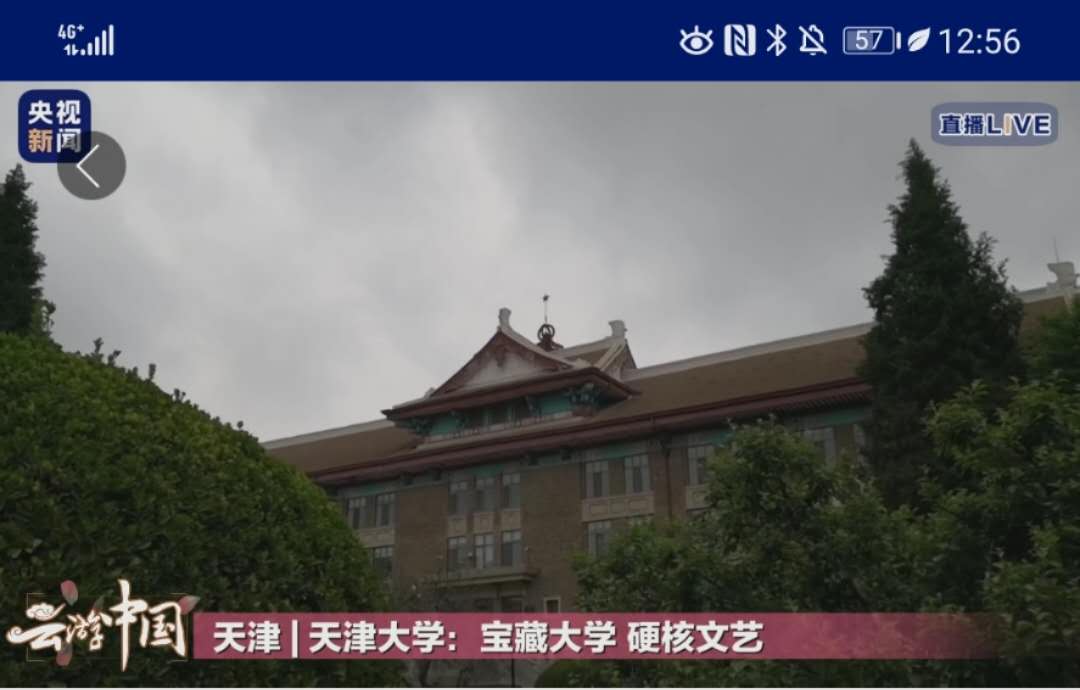 5月4日上午,央视新闻“云游中国”——五四特别直播和您相约在美丽的天大校园。在节目中,央视记者打卡了全国各个“最美大学校园”:看中国第一所现代大学——天津大学、赏北京大学未名湖、游拥有百年历史的复旦大学、品传统园林式雅致风格的南京师范大学、漫步号称“海景校园”的厦门大学、逛坐落在天府之国的四川大学。在节目中,天津大学卫津路校区的美丽风光隆重出镜。应网友期盼,央视记者走进了天津大学冯骥才文学艺术研究院实地探访,感受人文厚重的文化艺术氛围。