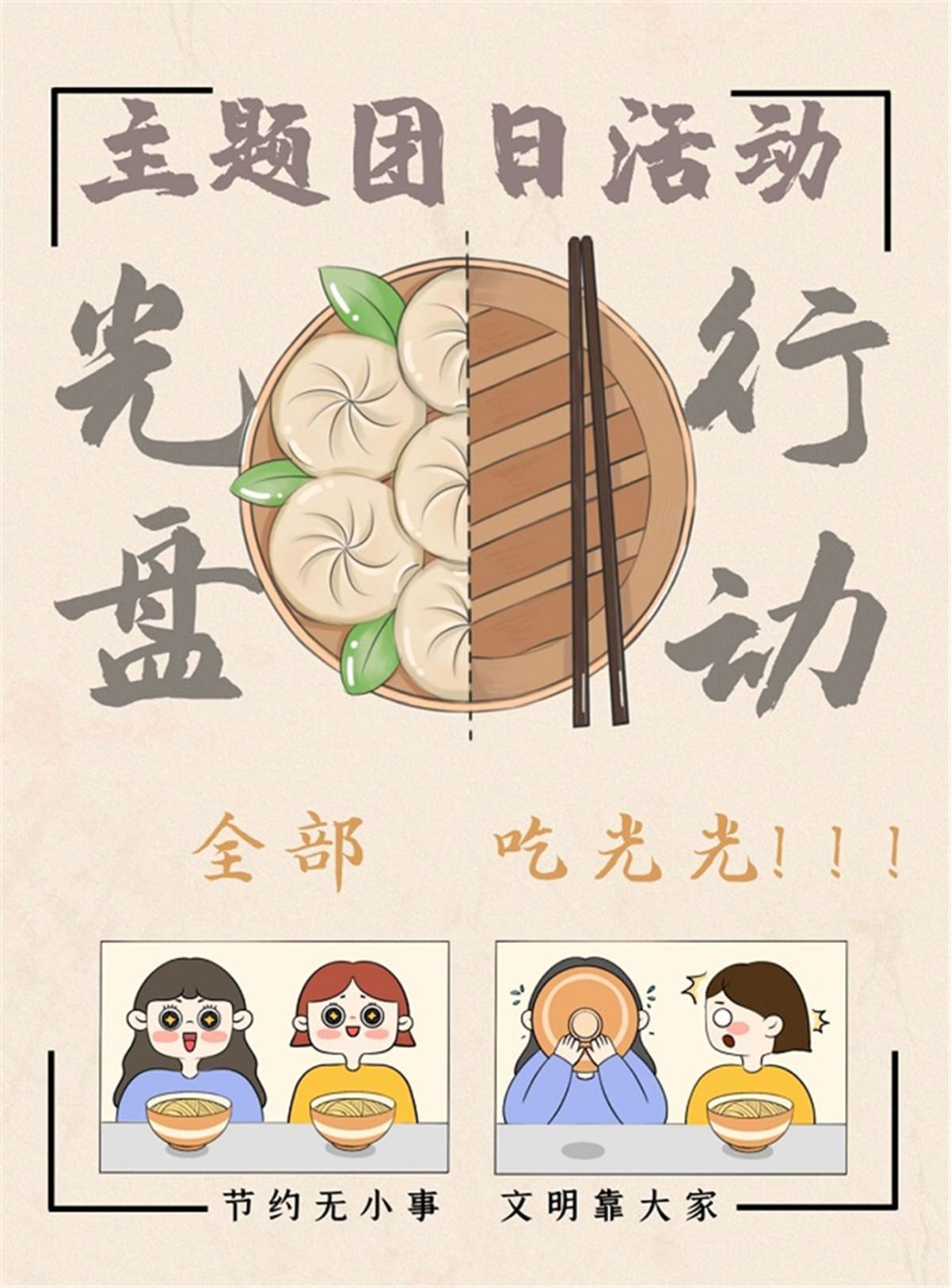 为进一步宣传贯彻习近平总书记关于制止餐饮浪费行为的重要指示,切实落实团省委关于制止餐饮浪费行为的具体要求,营造以节约为荣的校园氛围。9月初,校团委迅速组织开展以“拒绝餐饮浪费行为 争做文明节俭青少年”为主题的团日活动,各学院、基层团支部纷纷积极响应,带领广大青年积极投身光盘行动中,引导青年学子树立节约粮食的就餐意识,养成文明节俭的就餐习惯。
