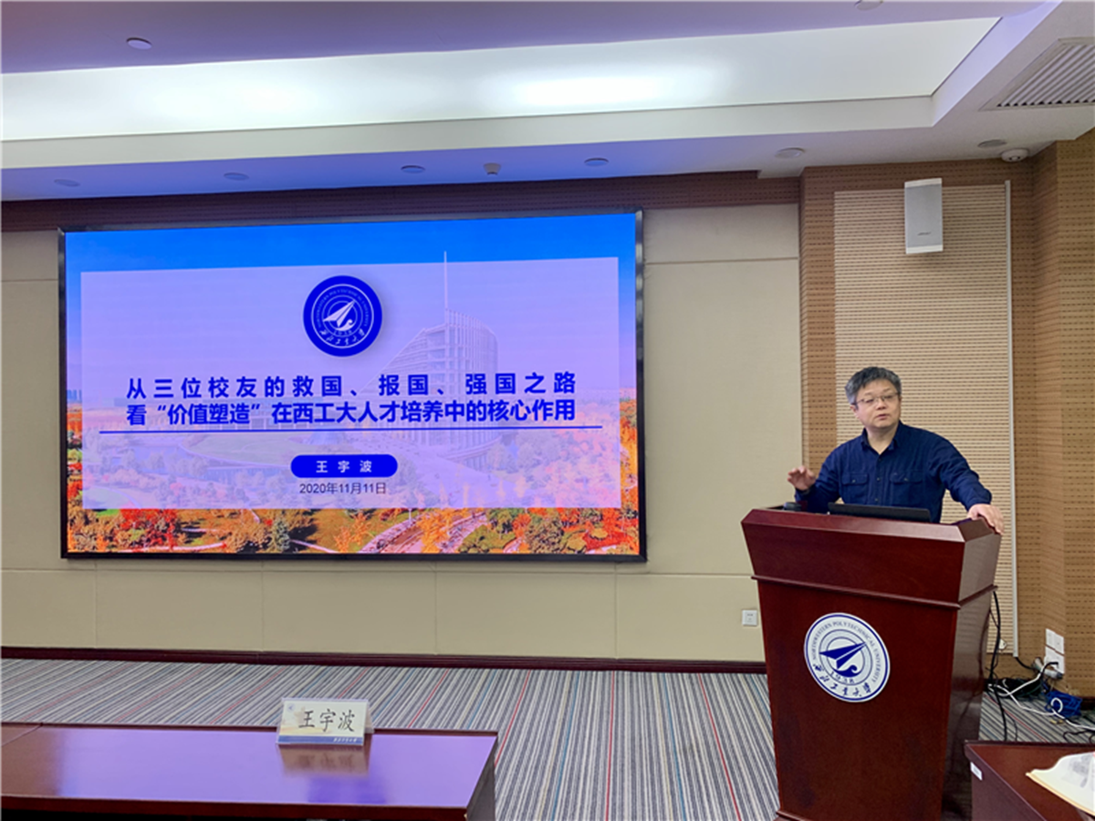 王宇波以《从三位校友的救国、报国、强国之路看“价值塑造”在西工大人才培养中的核心作用》为题,分享了以师昌绪先生为代表的老一辈校友怀救国之心、毕生投入科技救国的伟大事业,以杨伟学长为代表的中年校友怀报国之志、投入科技报国的伟大事业,以尹东为代表的青年校友怀强国之梦、投入科技强国的伟大事业的典型案例,介绍了价值塑造在我校人才培养中的重要作用,以及“西工大现象”的内涵。希望机关部门继续提高素质教育培训,培养出更多的具有家国情怀、不断追求卓越、立志引领未来的领军人才,继续传承西工大精神,续写新的“西工大现象”!