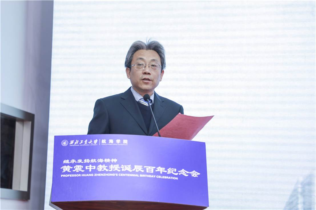 纪念会伊始,潘光代表航海学院对嘉宾们的到来表示热烈欢迎,并详细介绍了黄震中教授的生平与贡献。他表示,黄震中教授开创了中国普通高校系统进行水中兵器高层次人才培养的先河,培养了两位中国工程院院士,并为航海学院的发展打下了坚实的基础。举行黄震中教授诞辰百年纪念活动,不仅是对历史的回顾,对老先生的追思,更是对老一辈“航海人”宝贵精神的体会、思考、感悟、继承和发扬,是对学院文化的凝聚与探讨,是对未来发展的展望。学院将铭记黄震中教授等老一辈科技工作者为我国教育事业和国防科技事业做出的贡献,发扬他们的教育思想和科研精神,传承“航海人”血液中流淌的红色基因和蓝色报国情怀。