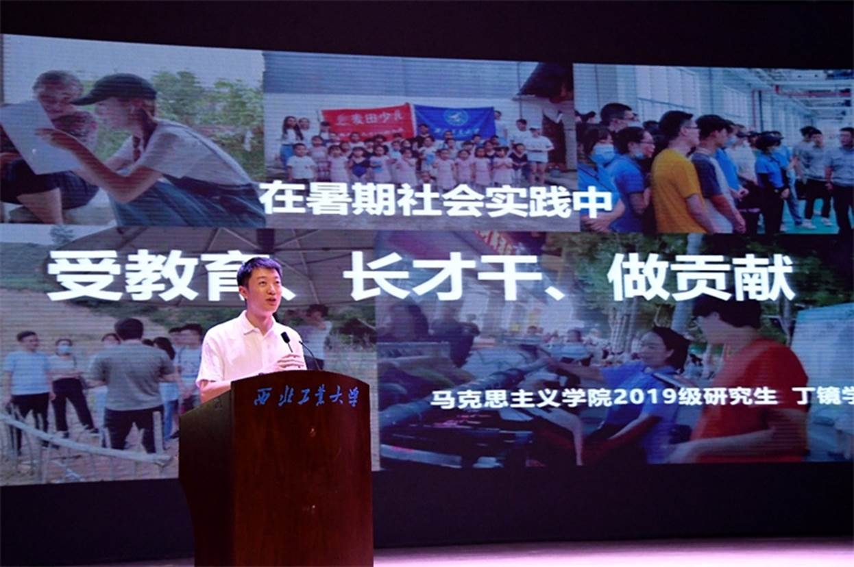 接着,2020年“三下乡”活动省级先进个人丁镜学结合自身经历从社会实践能否带来正面的社会效益、能否为当地提供智力支持、能否为学校创造良好口碑进行经验分享。校第20届研究生支教团团长宋超以“支教育人永葆初心使命,扎根西部追思百年华章”为主题号召更多同学参加研究生支教团,为乡村振兴贡献青春力量。随后,校党委副书记万小朋为第23届研究生支教团、各学院、十四运专项实践团授旗。