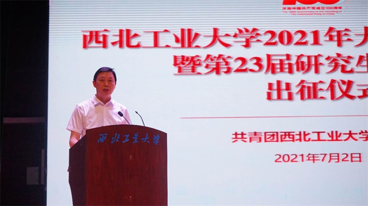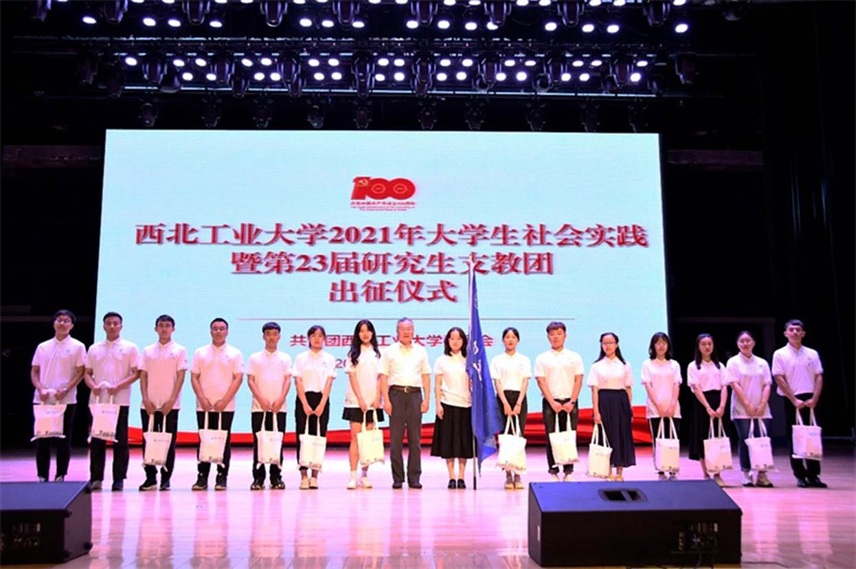 7月2日下午,2021年大学生社会实践暨第23届研究生支教团出征仪式在翱翔学生中心举行。校党委副书记万小朋,校长助理、教务处处长张开富,党委学生工作部部长代富平、副部长管兴华,国际教育学院副院长李自伟,校团委书记周凯以及各学院党委副书记、团委书记,校团委工作人员,社会实践队带队教师、学生成员代表近800人参加出征仪式。