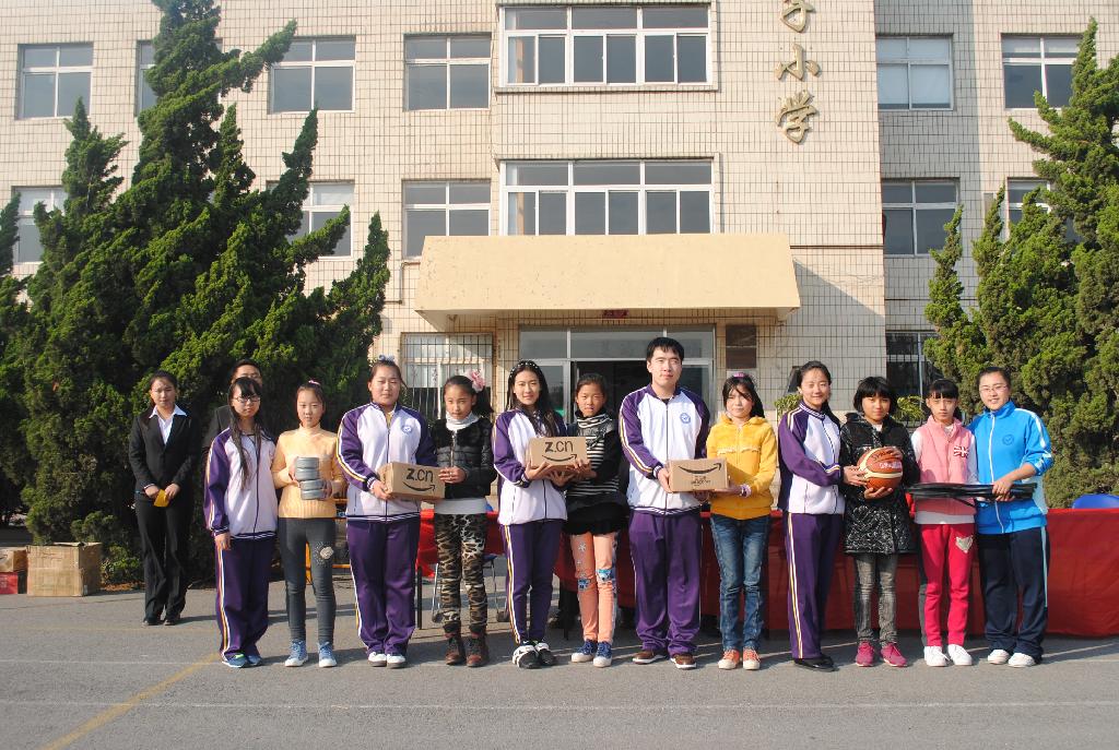 国际商务语言学院给小学生们捐赠爱心物品/摄影 王美杰(2013级商务日语5班)
