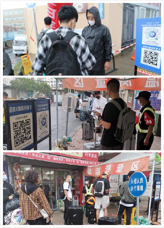 返校学生按照疫情防控要求进行扫码签到、核验身份、体温测量等规定流程 /摄影 姜利波 林怡辰