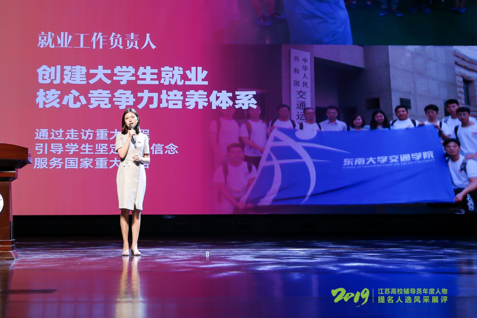 11月15日,由江苏省委教育工委、江苏省教育厅主办的“2019江苏省大学生年度人物和江苏高校辅导员年度人物”颁奖典礼在南京工业职业技术大学举行。评选活动自启动以来,累计107人申报辅导员年度人物,经过风采展评、实地考察、终评会议等多轮评选考察,最终产生“2019江苏高校辅导员年度人物”10名,提名奖19名。交通学院辅导员张航荣获“2019江苏高校辅导员年度人物”。
