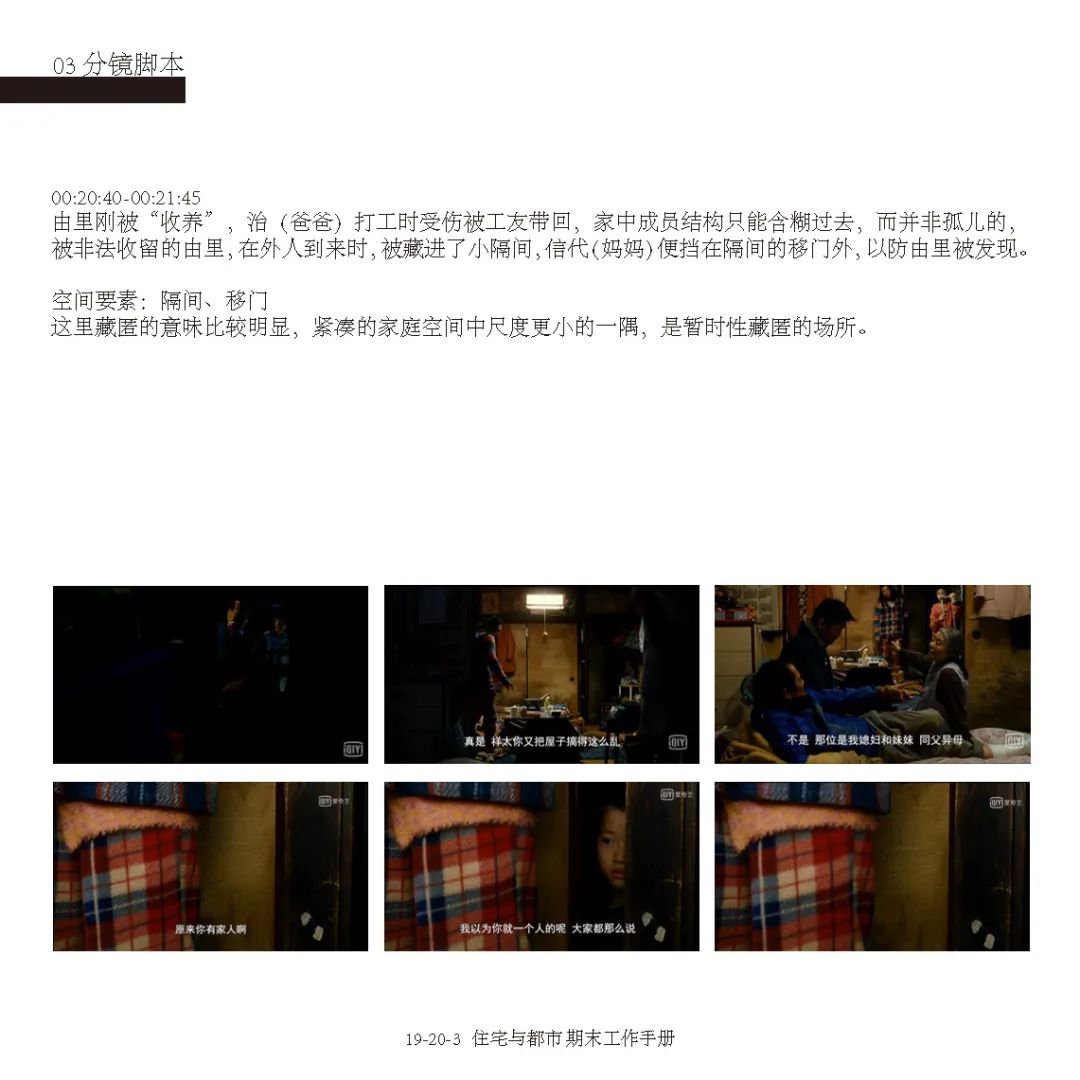 通过“剪辑历史”的作业,《住宅与都市》课程试图实现以下训练目标:一是通过影像媒介,理解塑造了各种居住形式,特别是建成环境获取“地方感”(sense of place)的复杂过程,其中,既包括物质性的知觉经验,也包括结构性的社会动因,更包括日常性的生活状态;二是依靠故事情节的叙述结构,练习围绕具体对象,结合案例进行多角度阐述的论证方法,从影像提供的“空间”材料中发掘出研究主题;三是通过对实物、文字、图绘、场景等各种媒介的跨界比较与特征辨认,加深对参与营造实践的不同主体特性的理解。