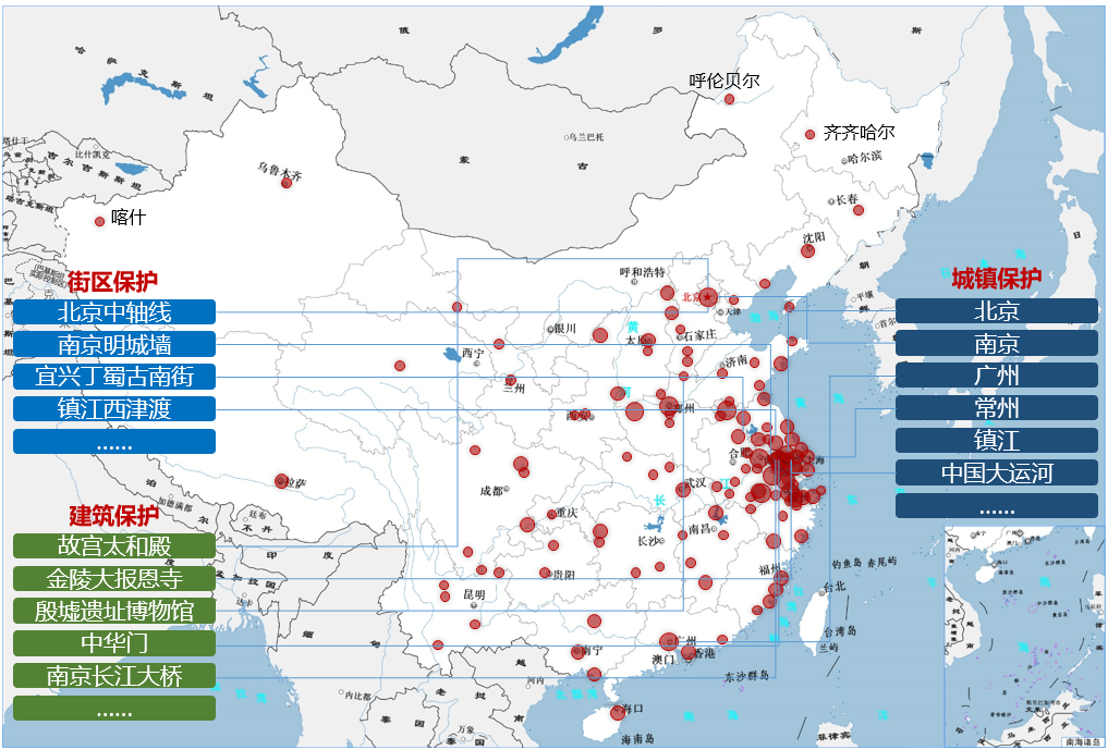 城镇建筑遗产主要指以城市-街区-建筑及其历史环境为完整载体的人类社会物质文化遗产,加强历史文化传承和建筑遗产保护是联合国和世界各国的基本共识。我国现有446座国家级历史文化名城名镇、1000多处各类历史街区、100多万处不可移动文物和历史建筑,它们共同构成了多尺度的中国城镇建筑遗产。