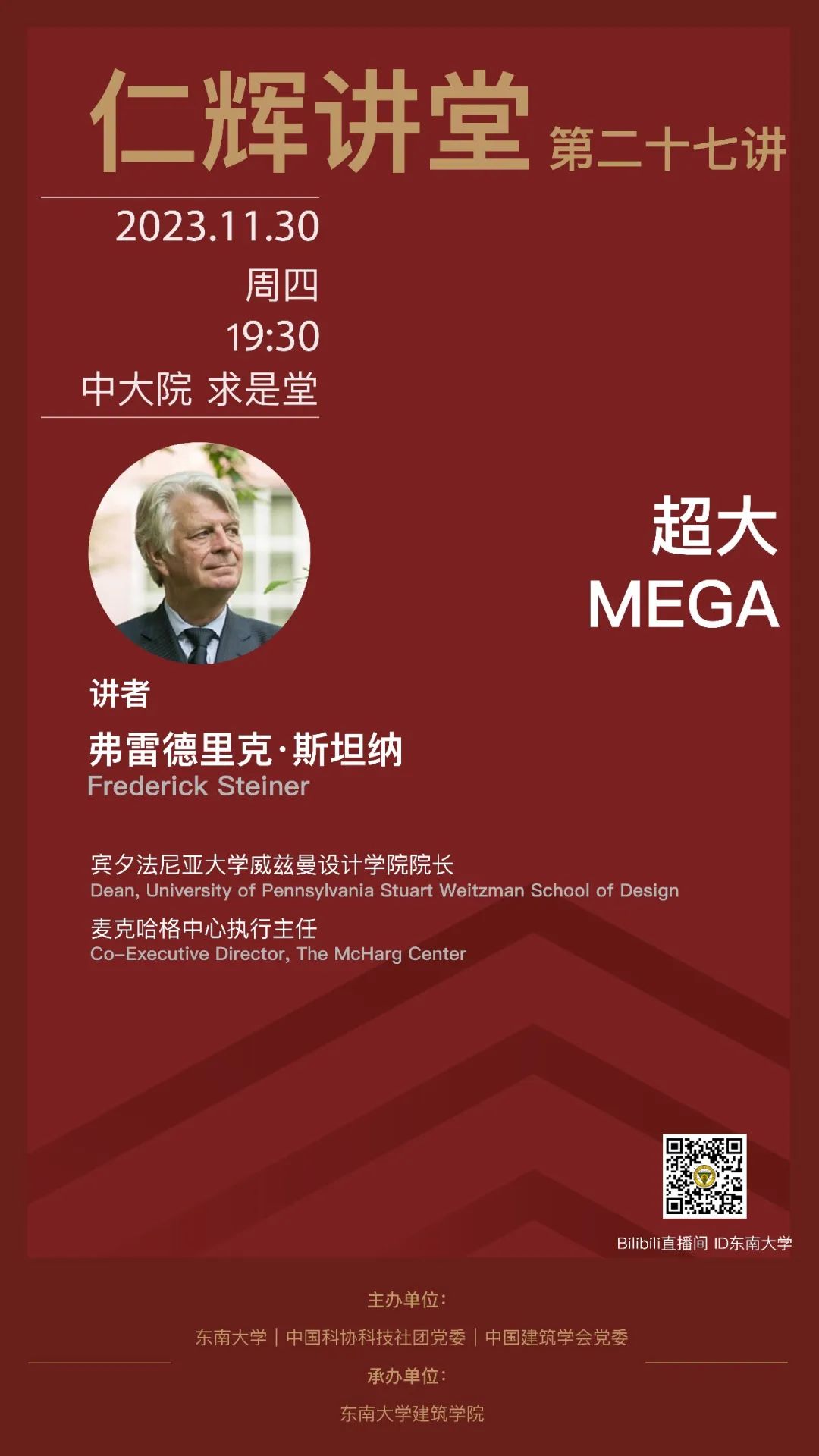 本期仁辉讲堂,由杨廷宝先生的母校宾夕法尼亚大学威兹曼设计学院院长,弗雷德里克·斯坦纳教授主讲,采取线上线下同步直播的方式开展。