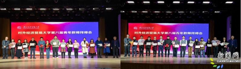 青年教师工作委员会委员、外语学院黄慧宣读5个拜师活动先进单位和21对优秀师徒表彰名单。校青年教师工作委员会成员、金融学院谢海滨老师宣读92对新结对师徒名单。
