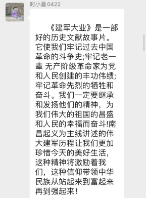 3月18日,国际经济与贸易学院第五党支部举行线上支部会议。本次党支部活动的主题是观看电影《建军大业》并发表观后感。整个活动过程中支部成员参与度极高,气氛十分热烈。