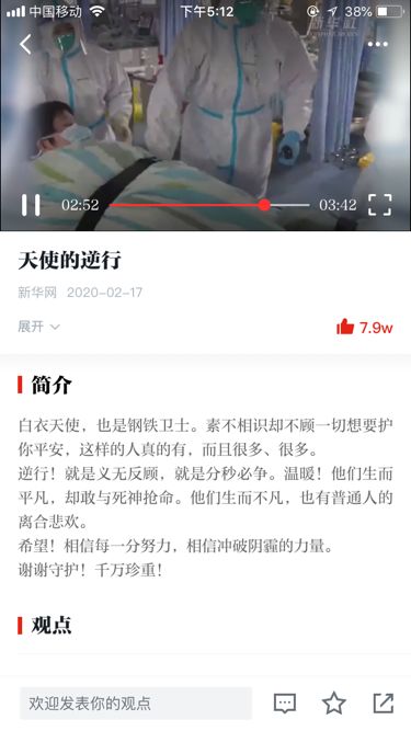 最后十分令我感动的是方舱医院的病人面对病情依然乐观的态度。这就是我们中国打不倒的精神。我相信在全国各方人士的努力下,我们一定可以攻克这个难关。