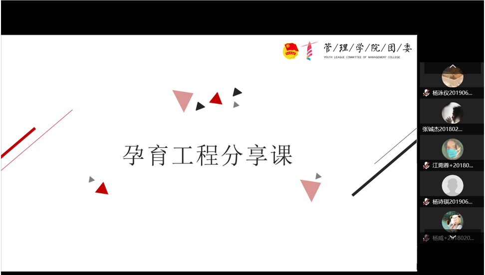 为积极响应广东省第六届中国国际“互联网+”大学生创新创业大赛组委会号召,并在管理学院党支部、辅导员团队的领导及大力支持下,电子科技大学中山学院管理学院孕育工程于2020年4月12日举办了主题为“青年+创新”的第三次线上分享课直播。本次课程特邀2017级人力资源管理B班的陶慧仪同学进行线上直播分享。