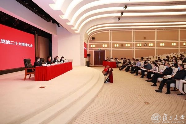 为切实把全校师生员工的思想和行动统一到党的二十大精神上来,凝心聚力奋进新征程、建功新时代,10月27日上午,复旦大学召开学习传达党的二十大精神大会。