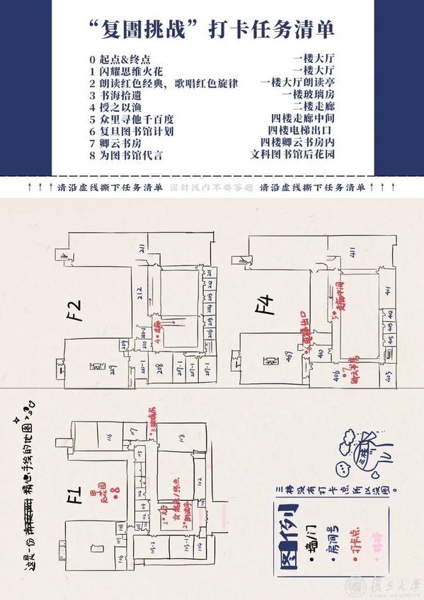 为展现红色馆藏资源和服务初心,引导学生体悟和坚定初心,作为读书节的重要内容,“复圕挑战”定向活动在开幕式后举行。
