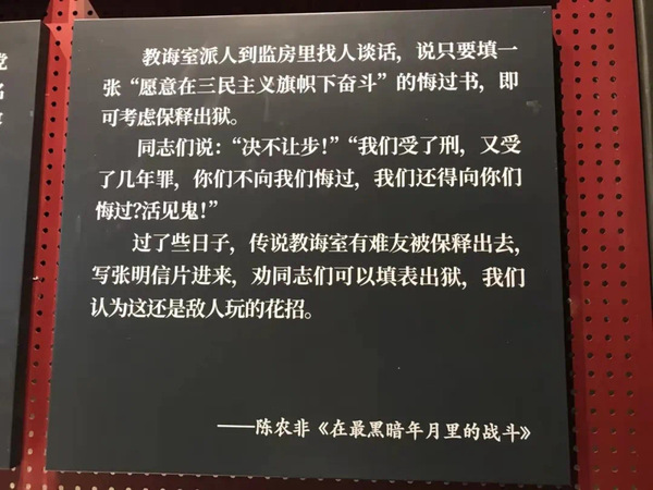 陈淮淮告诉学子们,1934年,多名重要人物叛变,中国地下组织遭受严重破坏,陈同生被捕入狱。他在狱中饱受折磨,被拉去刑场陪斩也坚持不认罪,大家唱着《囚徒之歌》,互相鼓励,坚持着。