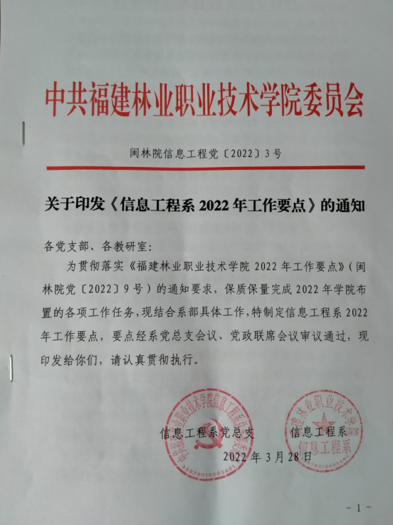 信息工程系2022年党政工作要点