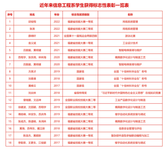 近日,我系党建工作品牌项目“多措并举推进党建工作提质增效”入选福建省新时代党建优秀案例,这是继我系党总支获得2021年全省高校先进基层党组织后党建工作取得的又一项荣誉。近日,我系《无人机应用技术专业教学资源库》通过省级专业教学资源库验收、《无人机空气动力学与飞行原理》通过省级精品在线开放课程验收、《MySQL数据库技术》和《HTML5与CSS3 开发技术》2门课程获得省级精品在线开放课程立项。这是我系在省级教育信息化项目上取得的重要突破,彰显了多年来系部在人才培养建设探索的成效。而这些只是近年来系部党建和业务方面取得成效的一部分。