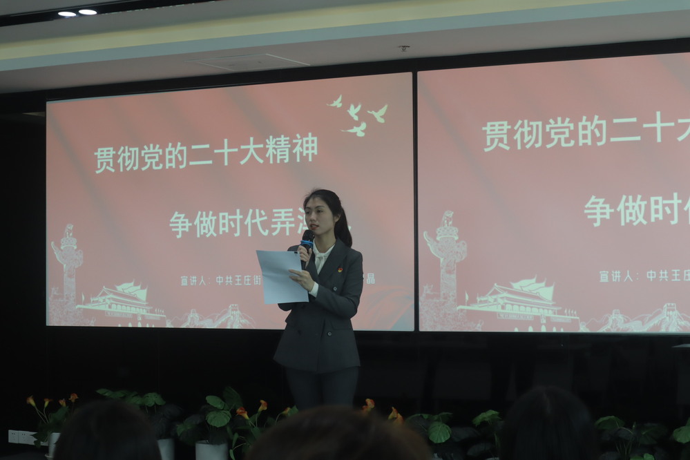 随后,王庄街道党工委组织委员高梦晶,为同学们上了一堂题为“贯彻党的二十大精神,争做时代弄潮儿”的精彩党课。紫阳社区党委书记吴晓莉围绕“党政风放飞青春梦想,书写人生华章”主题与同学们分享了社区党建治理经验。伊利集团负责人为同学们介绍了伊利集团在全国以及福建所做的公益活动,让2021级物业管理专业的学生深深感受到企业的社会责任感,也明白作为新时代大学生更应努力学习,成为有理想、敢担当、能吃苦、肯奋斗的新时代好青年。