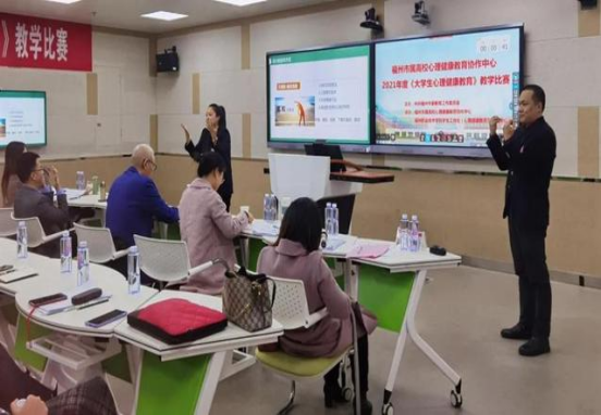 为进一步整合各高校心理健康教育教学资源,促进交流,提升各校心理健康教育教学水平,11月24日,学生工作处团委党支部牵头举办2021年度福州市属高校大学生心理健康教育现场教学大赛。比赛以“百年华诞心向党,育人育心促成长”为主题,邀请了福建师范大学心理学院彭新波副教授、福建中医药大学心理中心主任丁闽江副教授、福州大学心理中心许世梅副教授、福建工程学院王高洁副教授等担任评委,吸引了来自九所市属高校的心理健康专兼职教师积极参加,福州职业技术学院专兼职心理教师代表观摩了比赛。