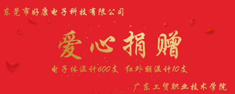 在教师党员的积极联系下,我校于2020年5月27日,收到东莞市好康电子科技有限公司的第一批防疫物资捐赠——电子体温计600支,红外额温计10支。