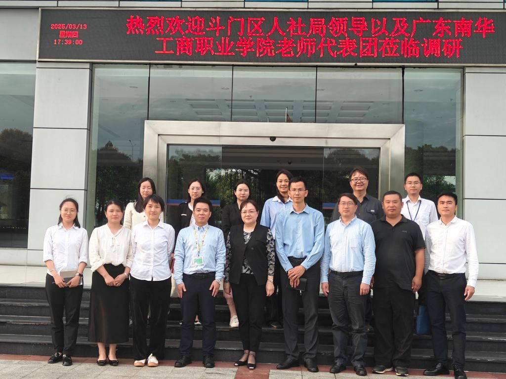 在区人社局,调研组与相关负责人就新时代技能人才培养、职业技能竞赛、企业工匠学院建设等方面进行深入探讨。双方一致认为,要充分发挥双方在技能人才培养方面的优势,联合开展职业技能竞赛,探索建立企业工匠学院,为斗门区产业转型升级提供强有力的人才支撑。