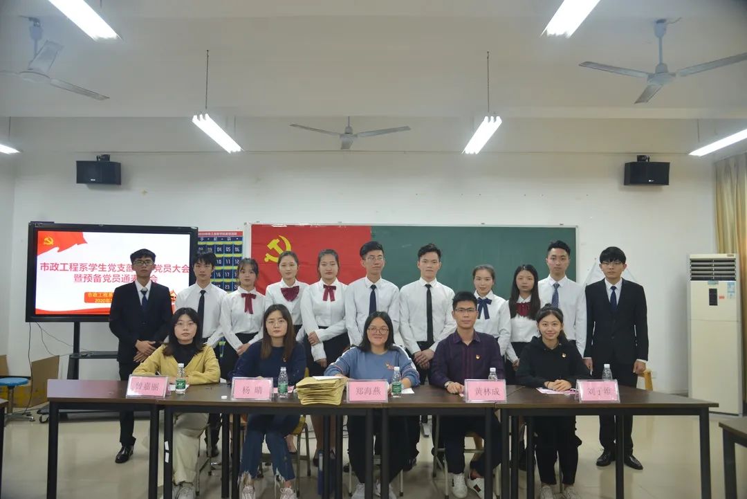2020年11月27日下午两点半,市政工程系学生党支部全体党员大会暨预备党员通表大会在市政楼A9-202教室正式召开。出席本次会议有,市政工程系学生党支部书记郑海燕,市政工程系黄林成、杨晴、刘子维、曾嘉丽等老师,以及全体学生党员、积极分子、第十九期系党课成员。