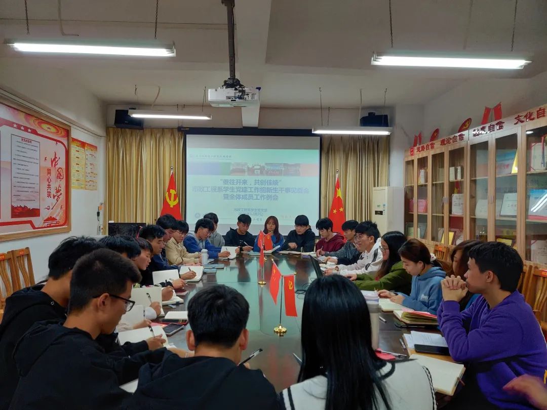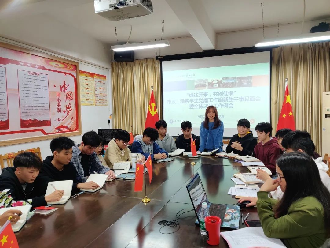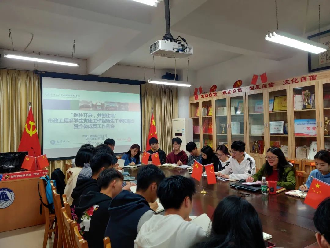 2020年12月7日21:00,市政工程系学生党建工作组新干事见面会暨全体成员工作例会在市政楼A9-602正式召开。出席本次会议的有系学生党支部书记、党建工作组指导老师郑海燕老师以及学生党建工作组全体成员。
