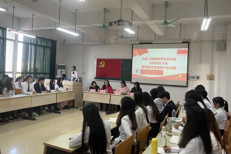 为响应党的号召,向党输送新鲜血液,提供优质人才,进一步推进党组织的队伍建设。2021年11月30日下午14:30,市政工程学院学生党支部于A1-503召开市政工程学院学生党支部全体党员大会暨预备党员通表大会。出席本次会议的有,市政工程学院学生党支部全体党员、重点发展对象以及部分积极分子。