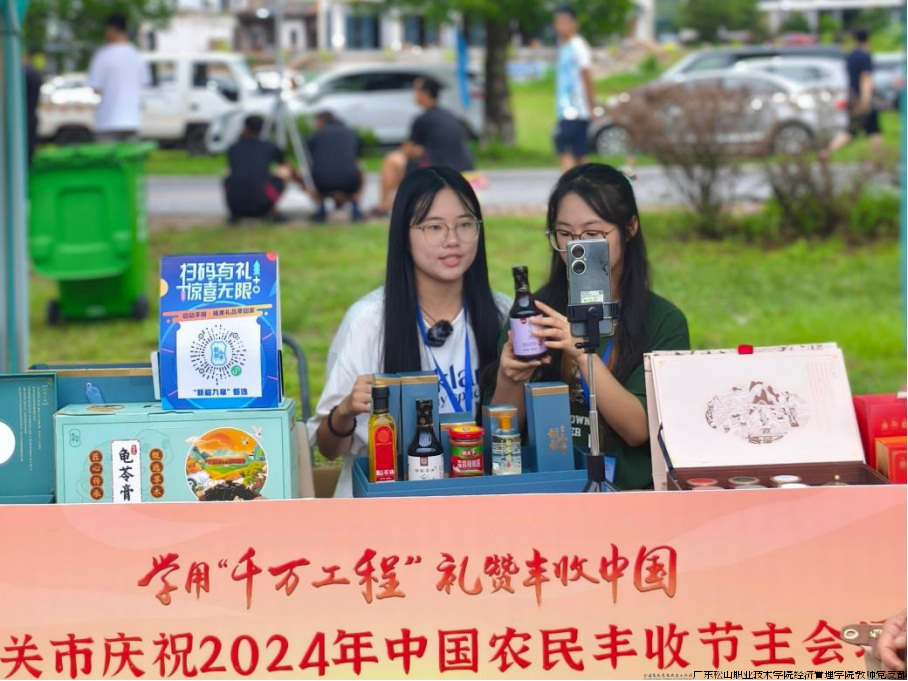 9月22日秋分当天,韶关市庆祝2024年中国农民丰收节主会场暨“善美韶农”品牌线上推广活动在仁化县丹霞山生态广场举行。经济管理学院教师党支部副书记李素琴带队,与文琪、莫炜、马青原等教师,以及农村电子商务专业、电子商务专业和人力资源管理专业6名学生组成的“直播小分队”,踏上了这场别开生面的直播实践之旅,为“善美韶农”品牌注入松山力量。