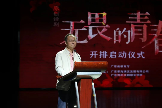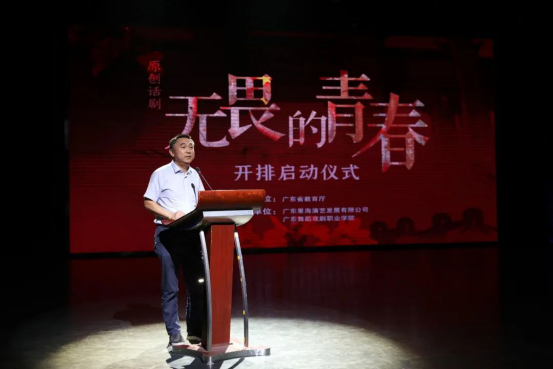 11月13日下午,由广东省教育厅指导,广东星海演艺发展有限公司和我院联合排演的大型原创红色题材话剧——《无畏的青春》开排启动仪式在佛山校区文体馆隆重举行。学院党委书记韩安贵、省教育厅体卫艺处调研员康天东,广东星海演艺集团管委会副主任、广东星海演艺发展有限公司董事长何超,著名导演、省艺术研究所国家一级导演王佳纳,著名编剧王秋月,学院党委副书记、副院长邹建军,副院长谢东乐及学院有关部门负责同志参加活动。