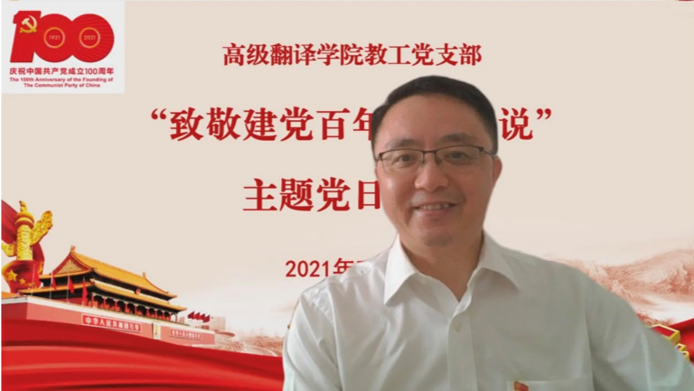 2021年7月1日下午,为庆祝中国共产党成立一百周年,我院教工党支部开展了“致敬建党百年 我有话说”主题党日活动,活动由高级翻译学院教工党支部书记蓝红军主持,教工党员代表畅谈观看习近平总书记在庆祝中国共产党成立100周年大会上重要讲话的体会与心得。