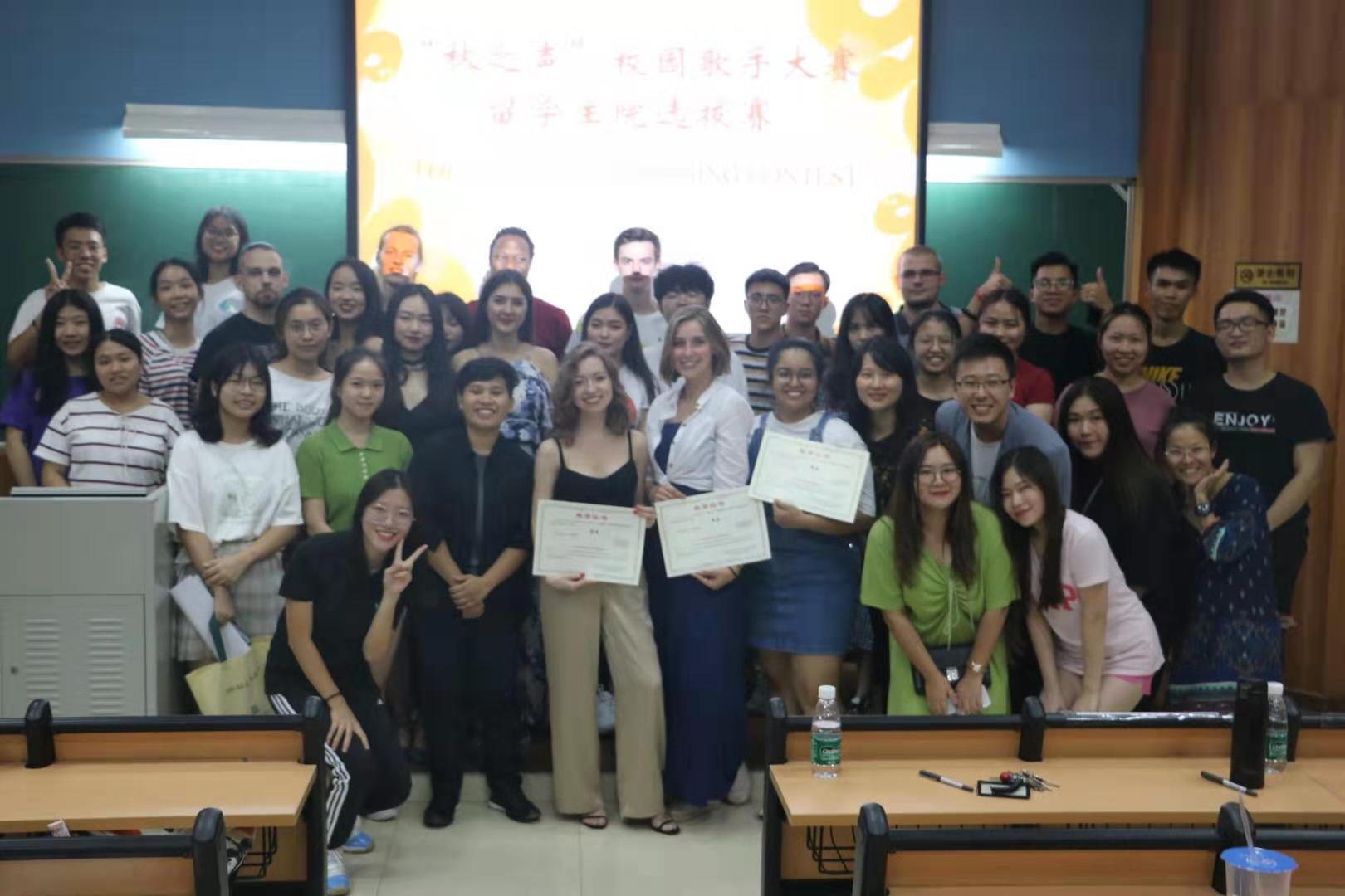 为丰富留学生课余生活,提高留学生校园活动参与度和对学校的归属感,留学生院党支部组织开展了“秋之声”校园歌手大赛留学生院选拔赛。2019年9月27号晚上7点,选手、观众齐聚在第七教学楼107室,我院办公室主任周泉、学生事务主任王一仟出席了本次活动并担任评委。在比赛中,八位来自不同国家的选手用中文、英文或是选手本国语言各自奉献了精彩的表演,现场的观众反响也十分热烈,对选手们致以一波又一波的掌声和欢呼。最终本次初赛角逐出三名获胜选手,前两名将代表留学生院参加“秋之声”校园歌手大赛校级赛。