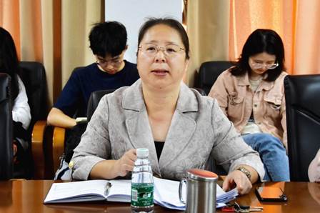 郝建萍向与会师生党员传达学校第四次党代会精神和党的十九届四中全会精神,逐条解读了党代会上隋广军书记作的党委工作报告,并强调需注意学习党的十九届四中全会的六大创新点。