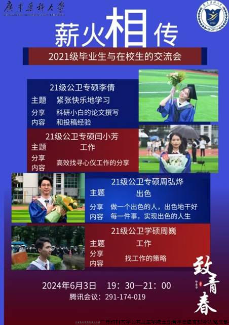 由广东药科大学公共卫生学院王烁青年志愿者服务队党支部主办、学院研究生会承办的“党建引领,‘职’引‘卫’来”系列经验分享会近期成功举行。